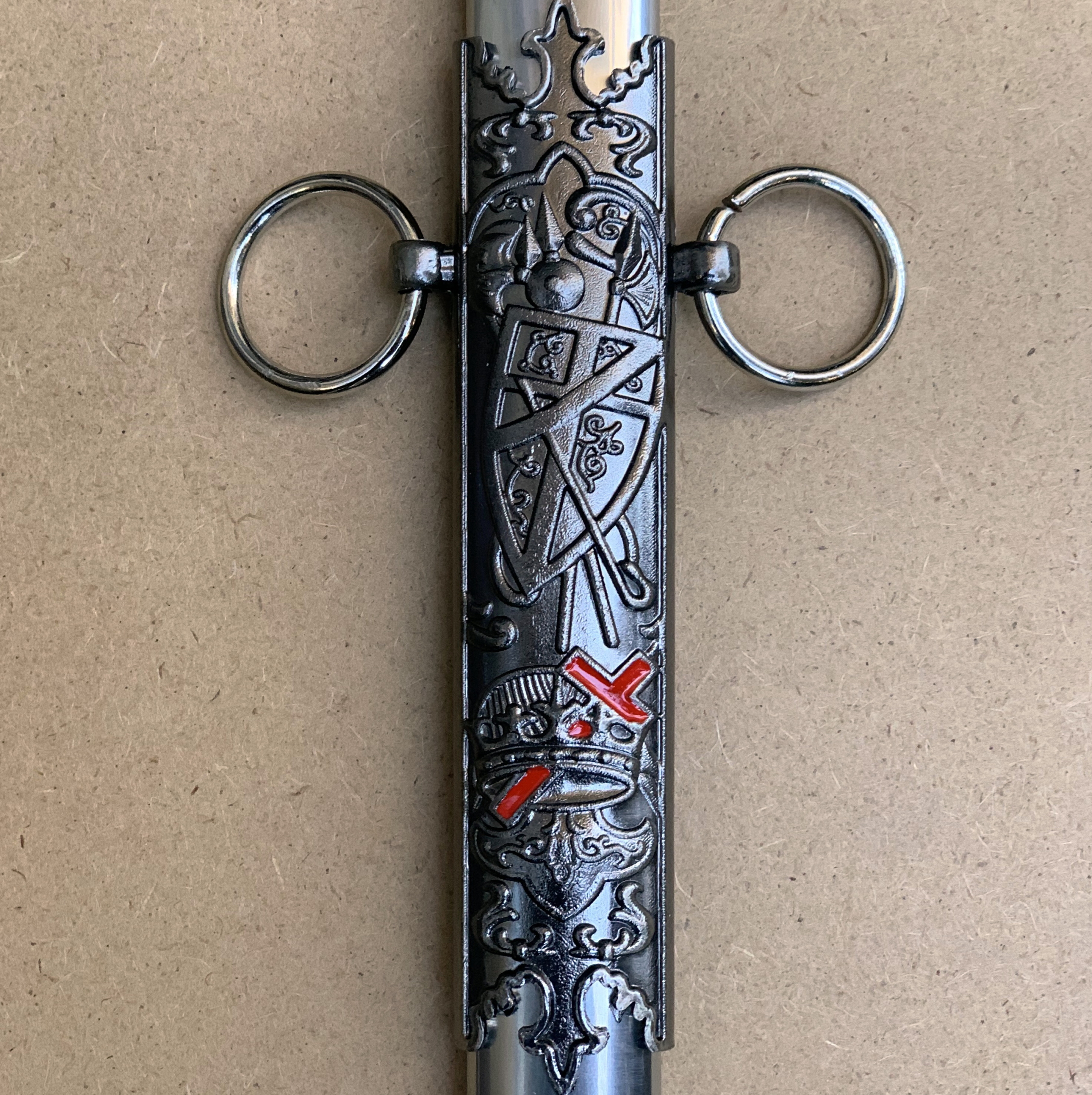 Sabie Cavaler Templier cu teaca-model deosebit de atent lucrat la detalii,lama este din otel inoxidabil damaschinat cu elemente si simbolistica templiera.